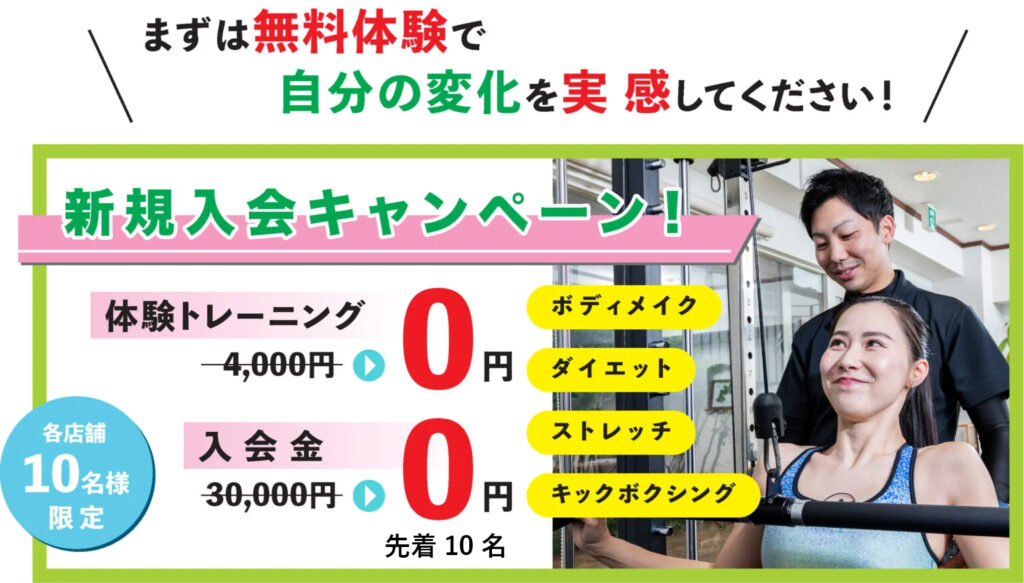 都内の平均単価より安く、通いやすい料金で健康的な体を手に入れることができます。